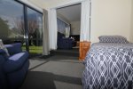 All three bedrooms come off the main living area allowing the gas fire to keep these nice and warm. The master bedroom has a queen bed with Freeview TV installed and the second bedroom has a single bunk set (beds in these two rooms are new in 2013). The third bedroom/sun room also consists of a single bed which is separated from the living areas with a curtain. All beds have electric blankets.