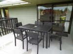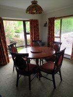 Upstairs: This space has a large open plan lounge/dining/kitchen with ranch-sliders that lead out onto a decking area for summer BBQs where at anytime of the day you can sit enjoying a drink and looking at the view over the village. The lounge has a 60 inch flat screen TV with Freeview as well as a DVD player for movie nights and a CD player to enjoy some background music while catching up with friends and family.
