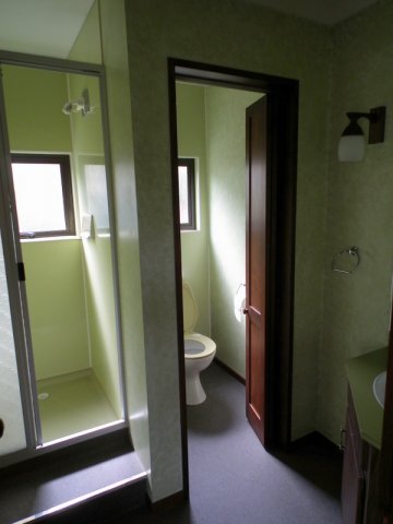 Downstairs: This space features a smaller lounge/dining/kitchen area and has a foldout couch acting as the third bedroom, its a great space for the kids to hangout as well while giving the parents a wee break upstairs as it also has a TV as well. The second bedroom comes off this lower lounge and a curtain is used for privacy. Downstairs also has it's own bathroom with shower and toilet, and the laundry is housed in the area. Please note this area can be cold for winter bookings.