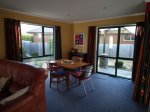 The living areas in this home are all open plan, and the large doors off the kitchen open wide to a lovely BBQ area for the summer evenings where you can have a BBQ and enjoy the sun and mountains. There is a flat screen TV with Freeview as well as a DVD and CD player for your entertainment on those evening you wish to unwind on the couch. In the winter time the home is heated by a heat pump or gas to keep everyone cozy.