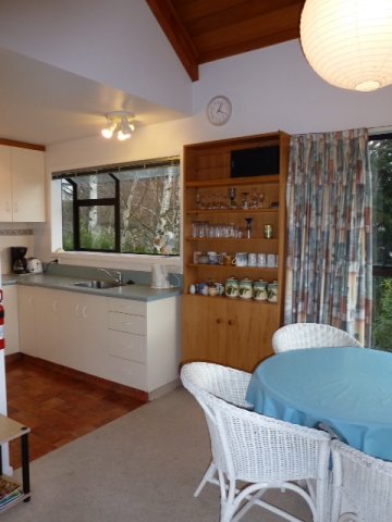 You will be warm in the winter with the log fire in the lounge, with two steps down from the hallway access opening up to the kitchen dining area and deck along the front.