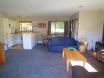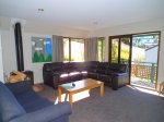 This lovely three bedroom home has open plan living, dining and kitchen. It has views of the mountains and is handy to popular walking tracks. It has Sky Sport, DVD and a large TV in the lounge, with a second TV and VCR upstairs in one of the bedrooms.