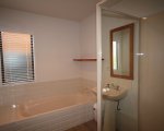 It contains three bedrooms. Two with queen beds and the third with king single beds to either keep separate or zip together for added versatility when staying. Although just one bathroom it is roomy with a separate bath to shower and a separate toilet.